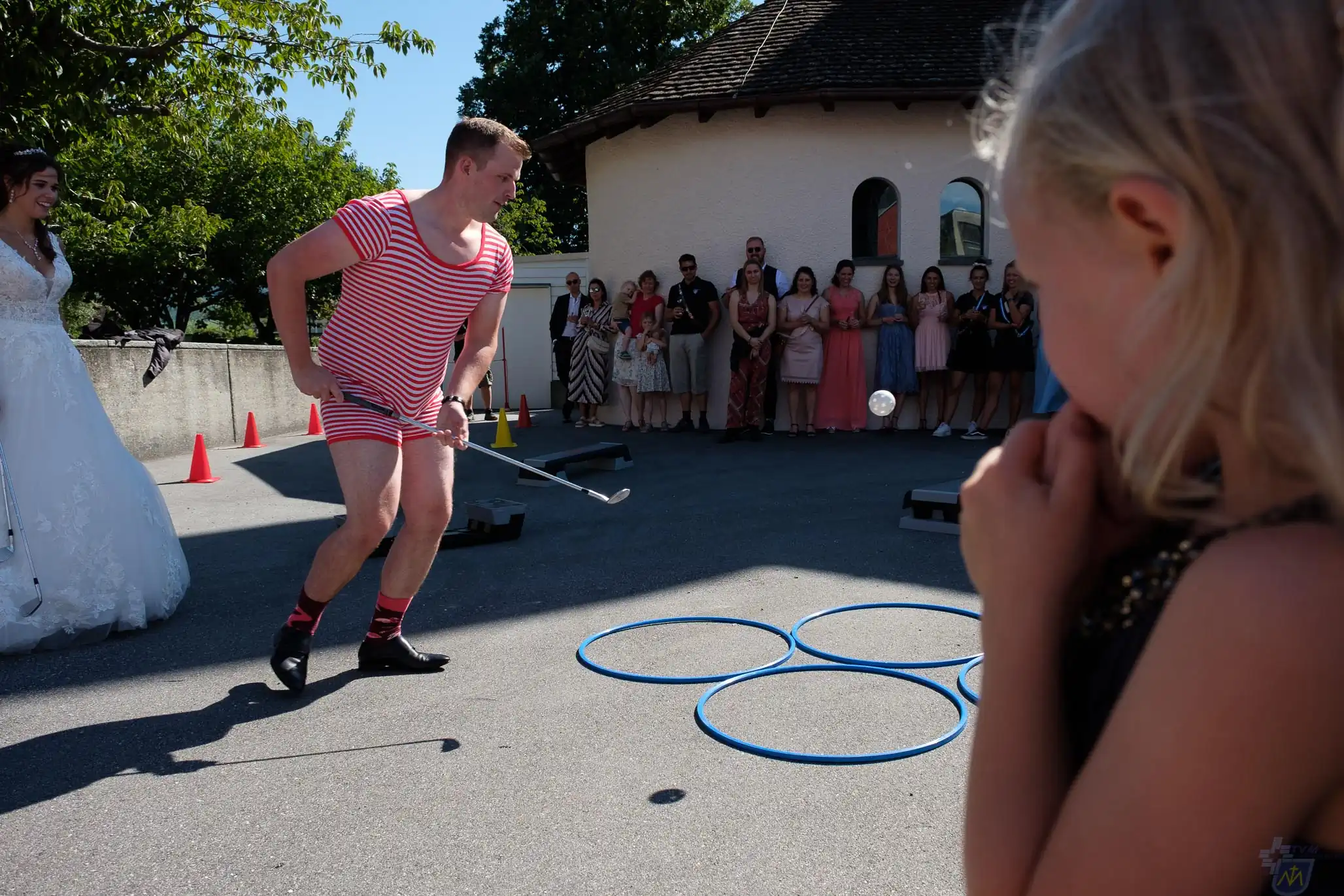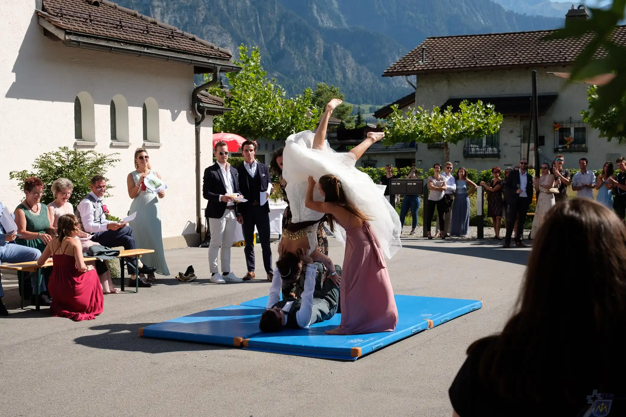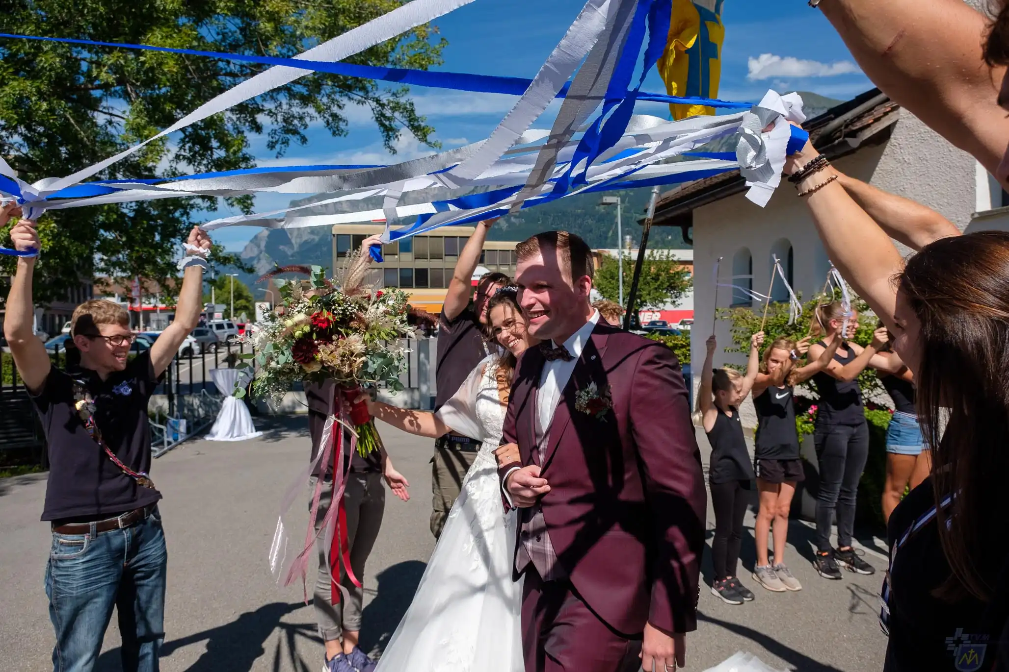 Hochzeit Andrea und Roland Bei wunderschönem Spätsommerwetter heirateten Andrea und Roland. Im Anschluss an die kirchliche Trauung in Landquart gab es den traditionellen Parcours für das Hochzeitspaar.