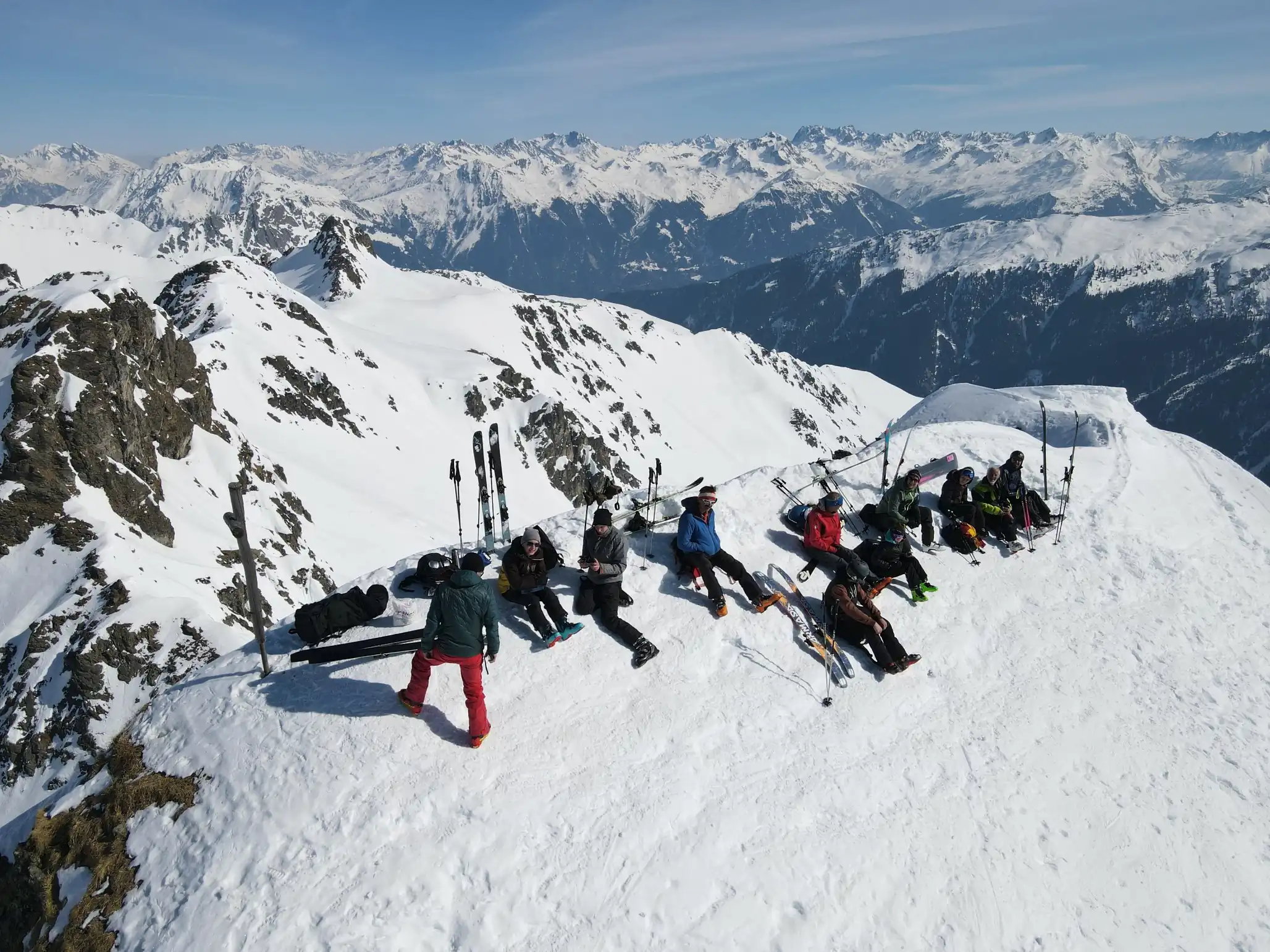 Skiturnfahrt Sulzfluh/Rotspitz Dieses Jahr führte uns die Skiturnfahrt bei herrlichem Wetter auf die Sulzfluh und nach einem gemütlichen Abend am Sonntagmorgen noch auf den Rotspitz hinter dem Mond links (St. Antönien).